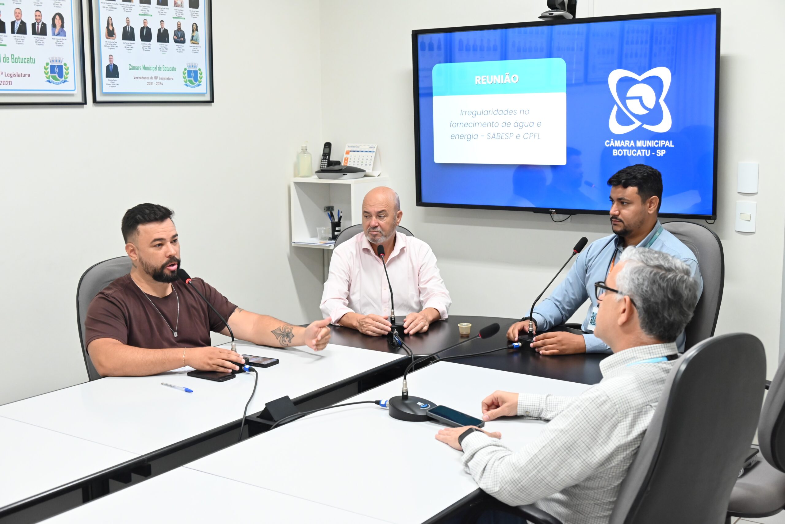 Participaram da reunião, além do Presidente, o vereador Welinton Japa (MDB), o coordenador da Divisão Botucatu da Sabesp, Sandro Henrique Branbilla Ramos, e o consultor de relacionamento da CPFL, Marcus Vinicius de Andrade Graciano.